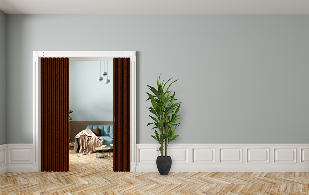 Produit sur-mesure, le mur mobile permet de séparer deux espaces avec une isolation phonique au moins équivalente à un mur traditionnel. Il se compose d’un nombre de panneaux sandwichs individuels suspendus à un rail au plafond.